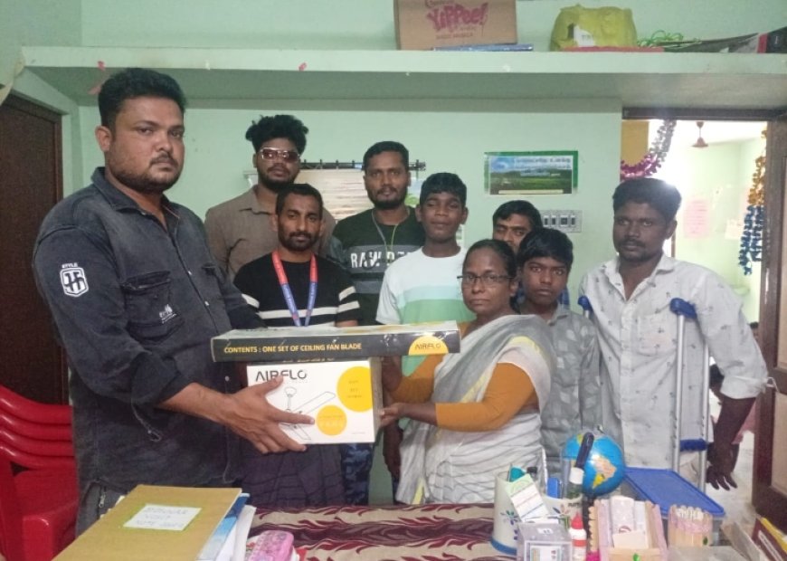 Deeba oli special school from Panruti E.khadharkhan Human Rights state secretary and I. Human rights state join secretary we are refer R. Sathik basha (Avl) to give donated one fan office purpose. Lot of thank you sir. For special school children and teachers and correspondent & Human Rights state joint secretary.